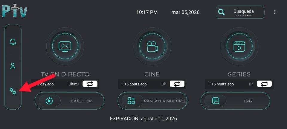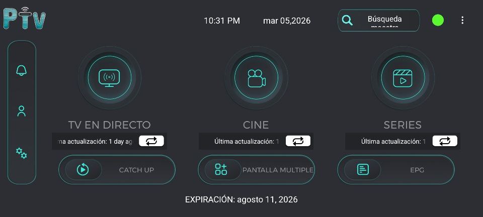 7. Una vez en en el menú principal ya puede ir al contenido de Tv en Directo, Cine y Series.