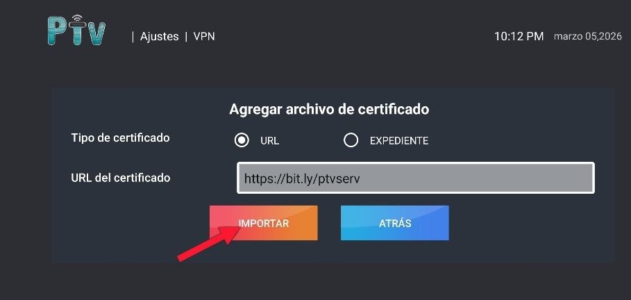 3. Ingrese el url y haga click en IMPORTAR para agregar los servidores VPN.