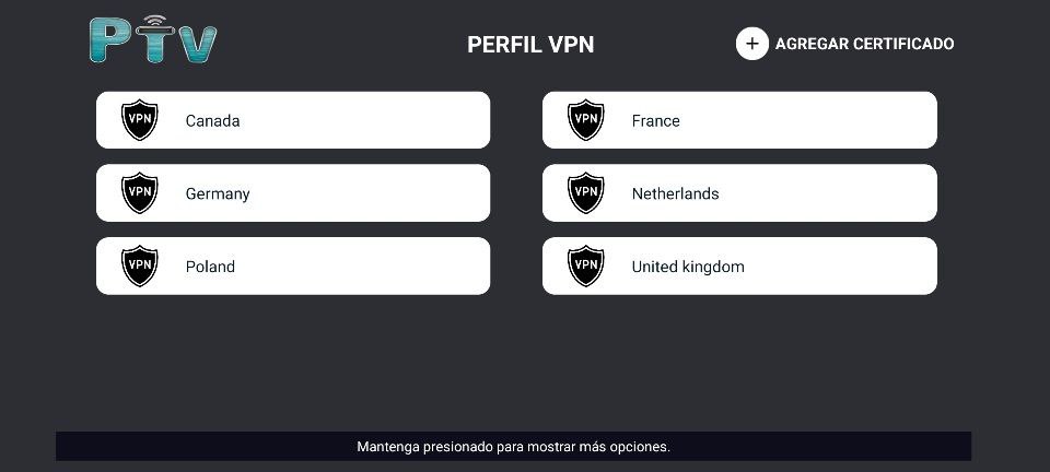 2. Seleccione VPN y luego click en Agregar Certificado